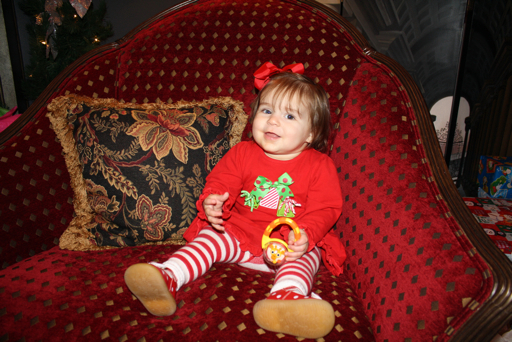 I just uploaded all our Christmas pics and truly hope to get some posts up. Until then...here are two pics of our little elf. In case you can't tell from the pics, Nora enjoyed her first Christmas- Even though she was fighting a bug (and in need of a bang trim). Stay tuned...